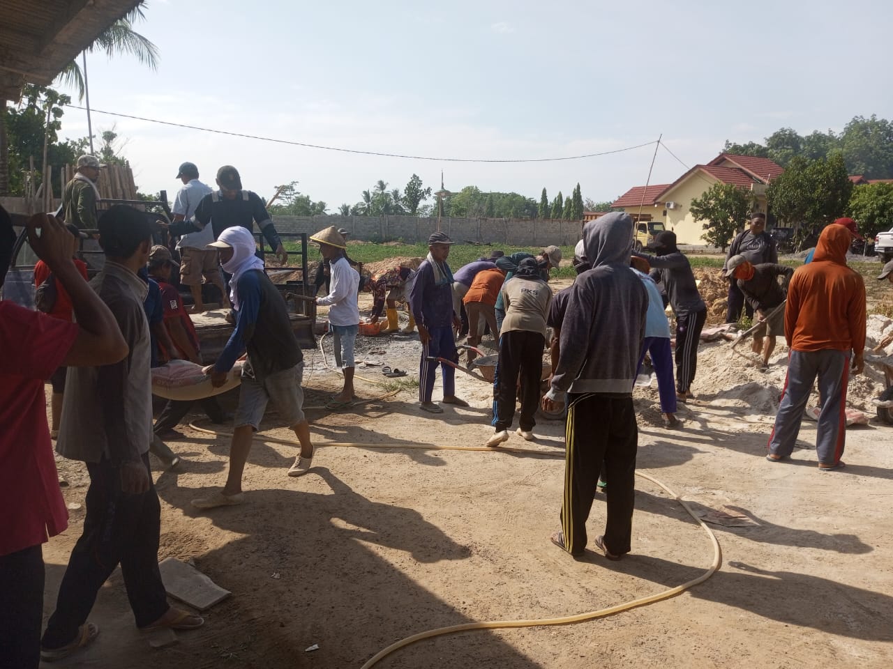 Warga Kampung Negeri Jaya Gotong Royong Bangun Pagar Mako di Polsek Negeri Besar