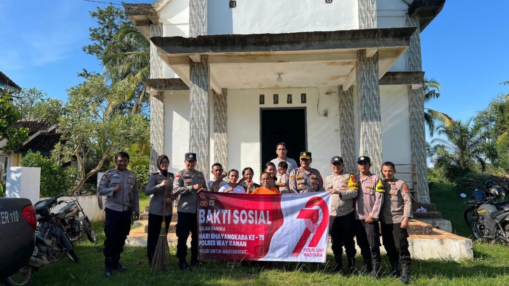 Waykanan – Menyambut hari Bhayangkara ke-79, Polsek Blambangan Umpu Polres Way Kanan melakukan kegiatan gotong royong membersihkan lingkungan GKSBS Kampung Negeri Batin Kecamatan Umpu Semenguk Kabupaten Way Kanan.