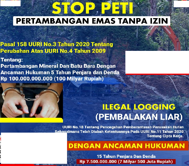 PETI secara terang-terangan melanggar Undang-Undang Nomor 3 Tahun 2021, tentang perubahan atas UU Nomor 4 Tahun 2009. Pasal demi pasal dalam regulasi itu menyebutkan bahwa siapa pun yang menambang tanpa izin bisa dipidana hingga 5 tahun penjara dan denda Rp100 miliar. Tak hanya penambang, mereka yang menampung, menjual, hingga mengolah mineral ilegal juga masuk dalam ranah pidana.