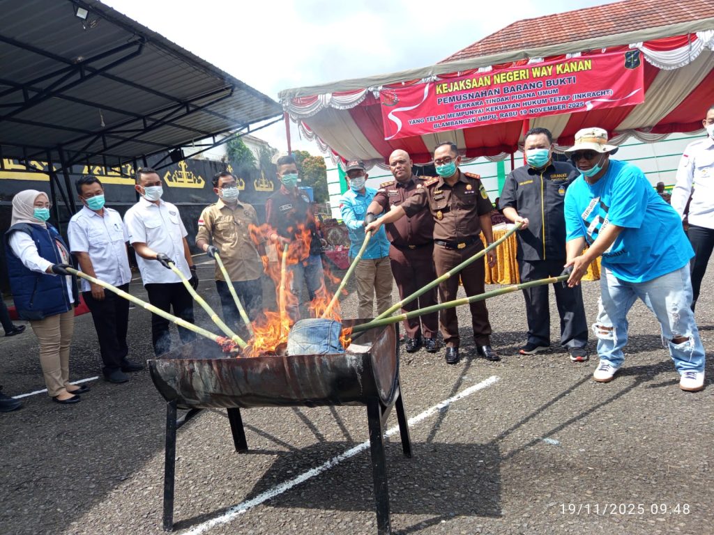 Kejaksaan Negeri Way Kanan menggelar Pemusnahan Barang Bukti Perkara Tindak Pidana Umum Yang Telah Mempunyai Kekuatan Hukum Tetap (Inkracht), Bertempat di Halaman Kantor Kejaksaan Negeri Way Kanan di Blambangan Umpu, Rabu (19/11/2025).