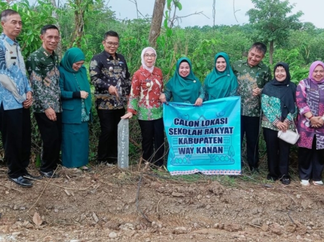 Bupati Ayu Asalasiyah menghadiri acara serah terima hibah tanah dan aset bangunan dari Kampung Gunung Sangkaran, Kecamatan Blambangan Umpu kepada Pemerintah Daerah Way Kanan untuk calon lokasi Sekolah Rakyat (SR) di Tanjung Agung, (2/10/2025)