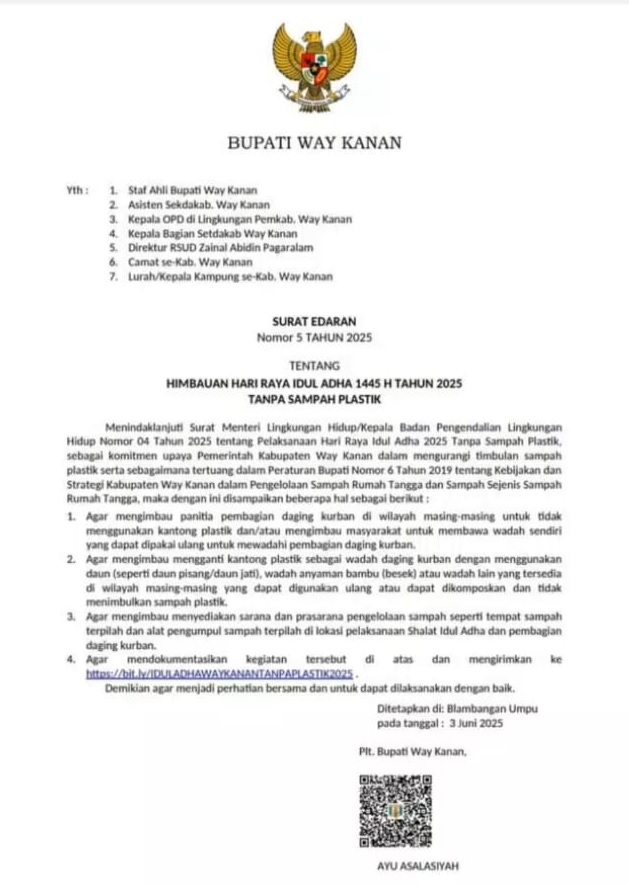 Way Kanan — Menjelang Hari Raya Idul Adha 1445 Hijriah, Pemerintah Kabupaten Way Kanan...